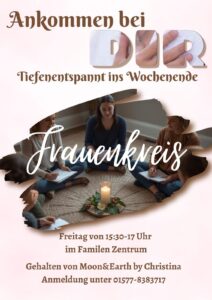 am 08. Mai 2026 findet das erste von insgesamt neun Treffen des Frauenkreises „Ankommen bei dir – Tiefenentspannt ins Wochenende“ statt. Alle Frauen sind herzlich willkommen und haben die Möglichkeit nach einer anstrengenden Woche Ruhe, Verbindung und Leichtigkeit zu finden.